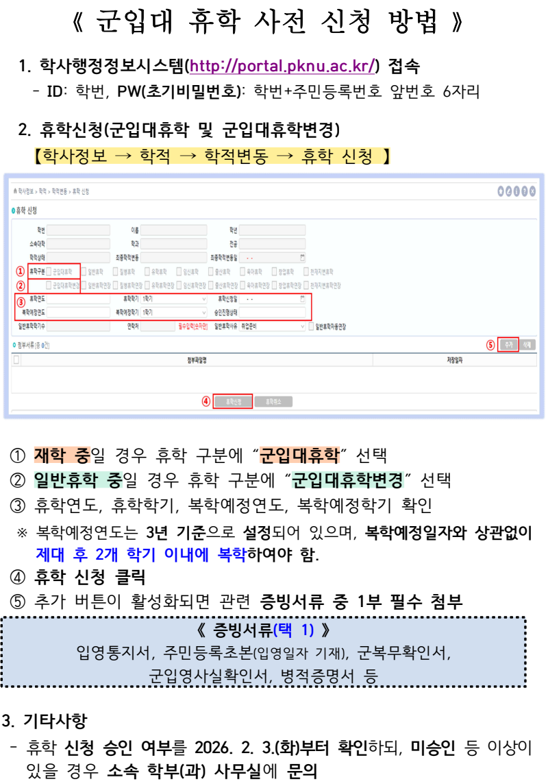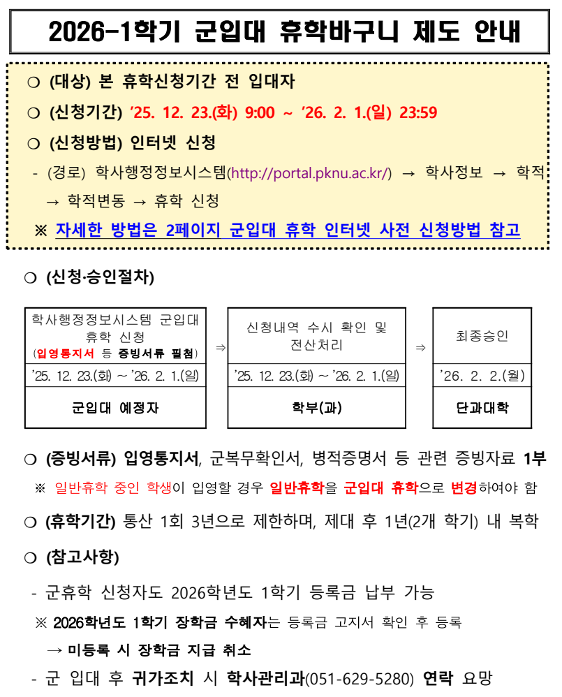 2026-1학기 군입대 휴학바구니 제도 안내